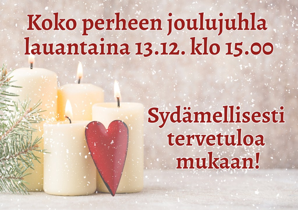 24. joulukuuta klo 16.00 – Jouluaaton yhteinen nyyttikestijuhla (Klikkaa ja lue lisää)