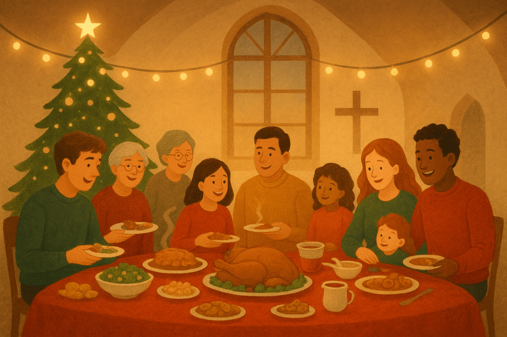 Tule viettÀmÀÀn lÀmmintÀ ja tervetullutta jouluaattoa nyyttikestien merkeissÀ. Syömme yhdessÀ hyvÀÀ ruokaa, vaihdamme kuulumisia ja nautimme hyvÀstÀ seurasta. Nyyttikestit tarkoittavat sitÀ, ettÀ jokainen tuo jotakin yhteiseen pöytÀÀn. Voit tuoda minkÀ tahansa ruoan, ison tai pienen annoksen, ja yhdessÀ saamme aikaan monipuolisen ja maukkaan aterian. Voit tulla yksin, ystÀvien tai perheen kanssa. Olet lÀmpimÀsti tervetullut viettÀmÀÀn joulua yhdessÀ.